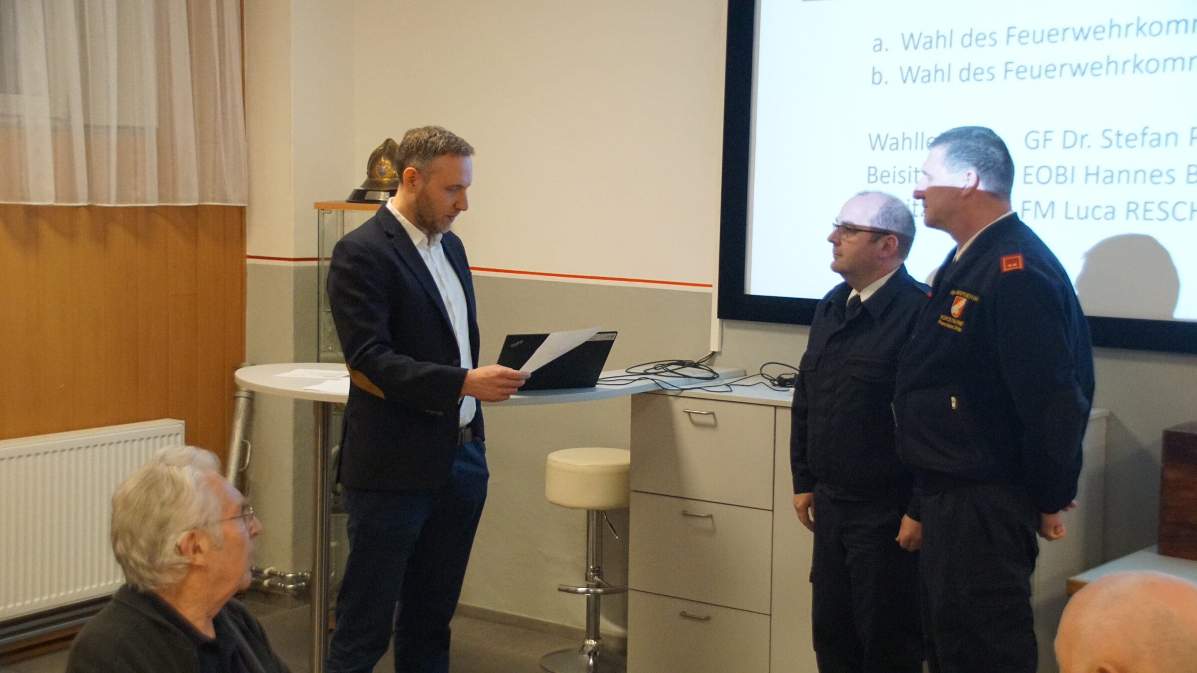 Zum Kommandanten gewählt wurde Hr. Schausberger Sigmund. Sein Stellvertreter ist in Zukunft Hr. Trümel Robert, der dem aus privaten Gründen nicht mehr angetretenen, bisherigen Kdt.Stv., Hr. Hintinger Christoph, nachfolgt.
