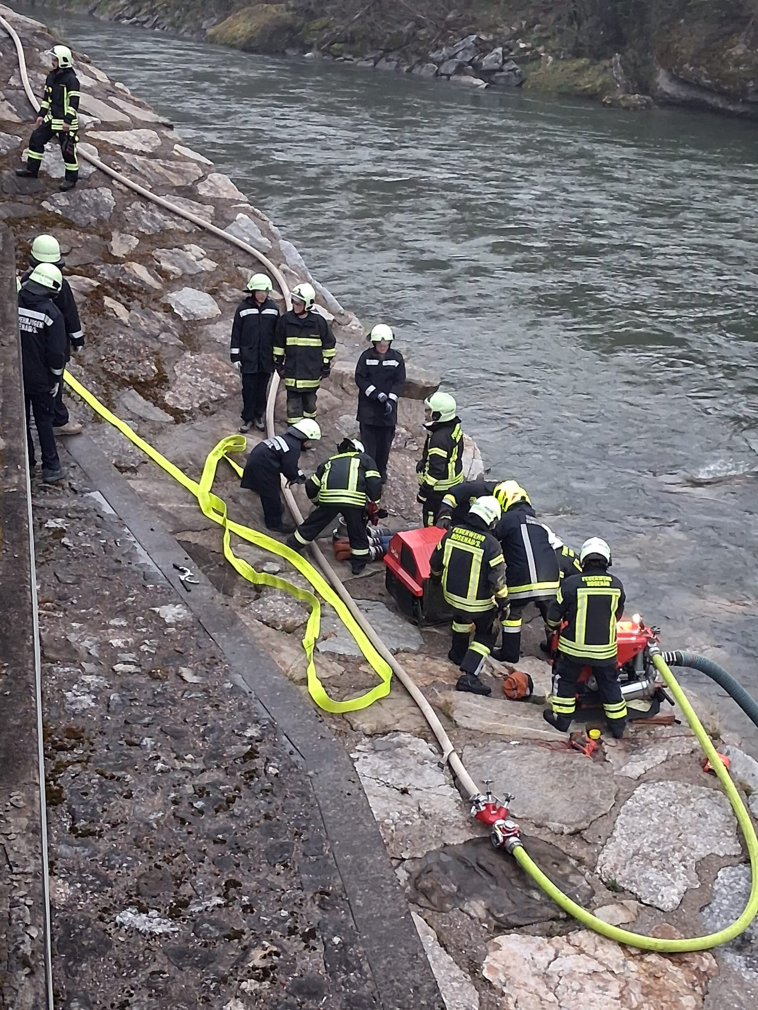 18:53 FF Doppel stellt Wasserversorgung aus der Ybbs mittels Pumpe her