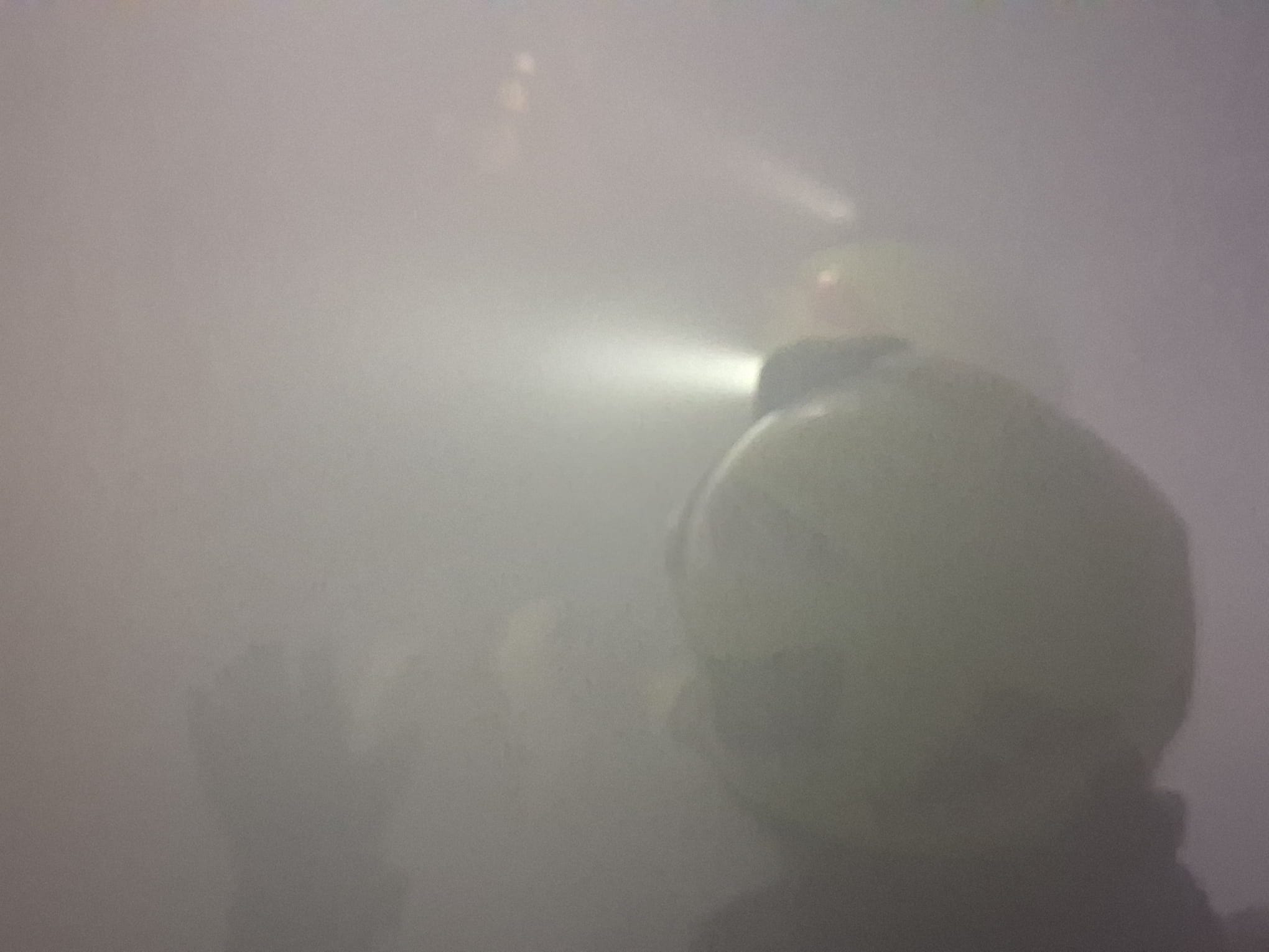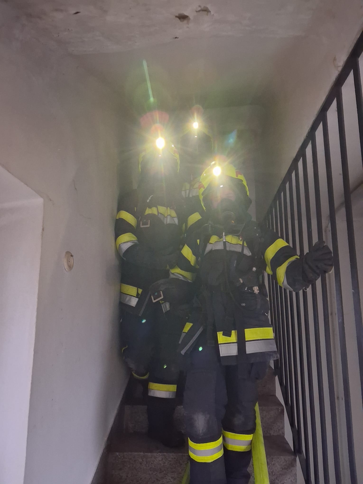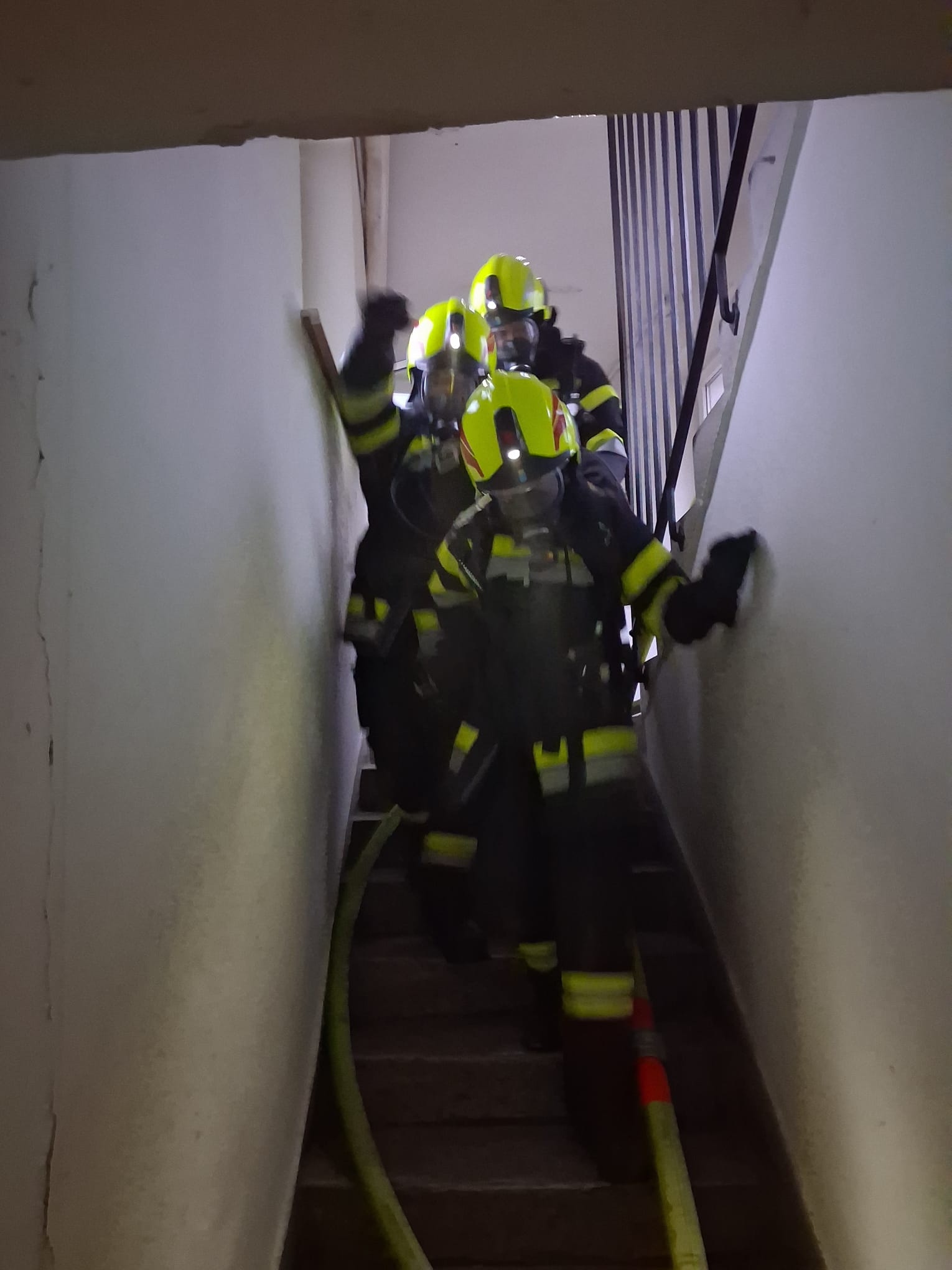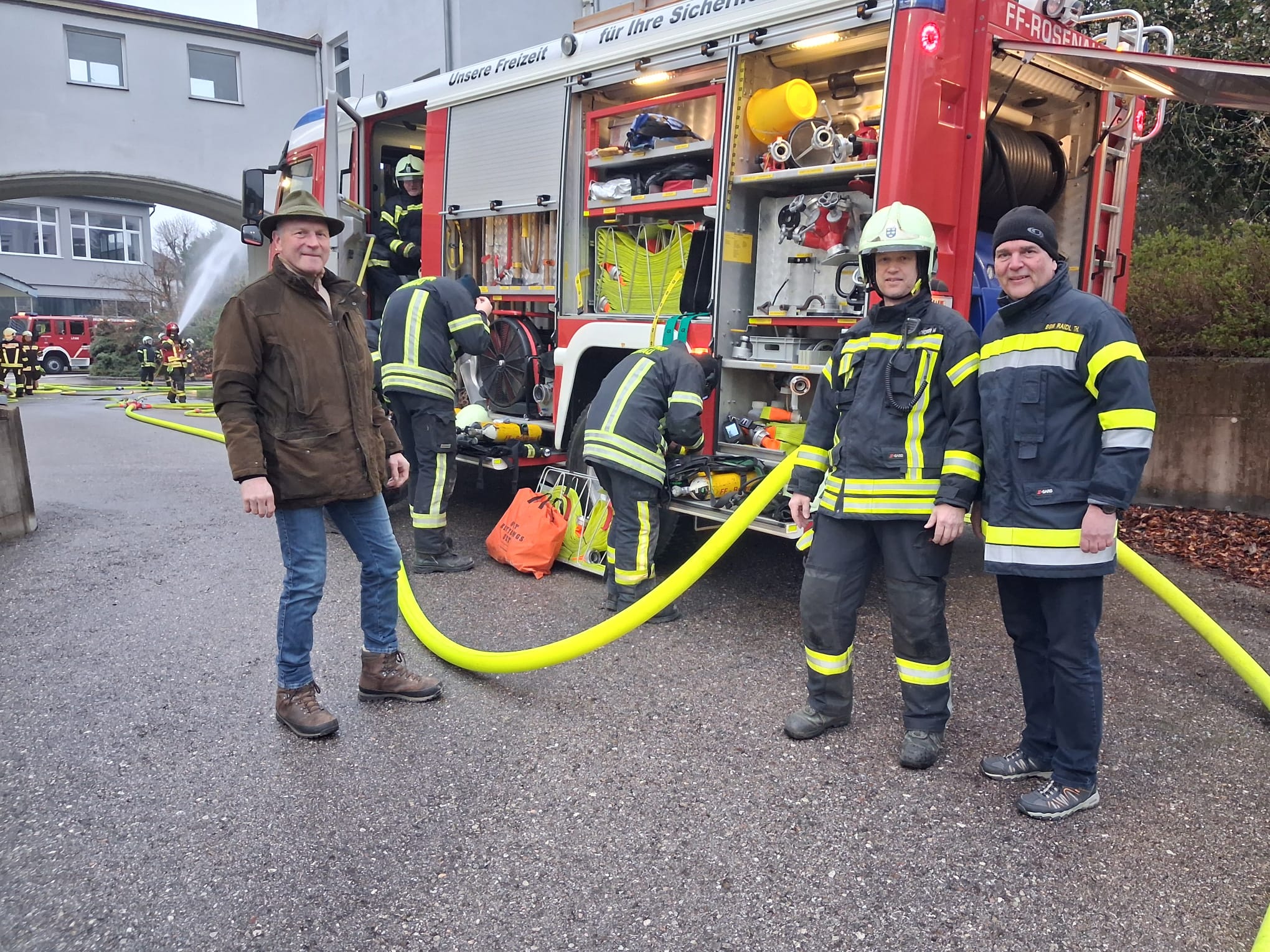 Um die Übung praxisnaher zu gestalten, wurde mit eigenem Nebelgerät das Gebäude simuliert verraucht.